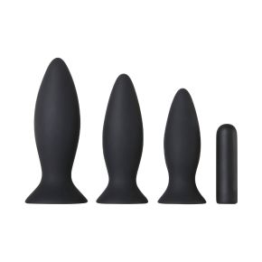 Ontdek het plezier van anale speeltjes met deze kit waarmee je kunt experimenteren. In de Anal Training Kit zitten drie buttplugs in verschillende maten van beginner tot gevorderd. Elke plug heeft een taps toelopende punt en een rekbare ring aan de onderkant. Gemakkelijk schoon te maken met toycleaner en warm water.