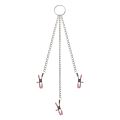 Breng je kinky verlangens naar een hoger niveau met deze set sexy bondage klemmen en kettingen. Twee klemmen met zachte punt klemmen op je tepels en derde klem op je clitoris om al je erogene zones met elkaar te verbinden. Elke klem is verstelbaar om de perfecte pasvorm te vinden.