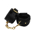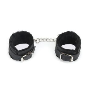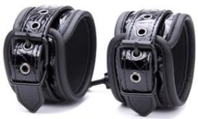 Vul je bondage collectie aan met deze stijlvolle enkelboeien met leder look. De binnenkant van de enkelboeien zijn voorzien van zacht pluche zodat het comfortabel aanvoelt. Aan de buitenkant zit een handige gesp waarmee je de maat kan verstellen, op deze manier sluit hij goed aan. Deze enkelboeien zijn ideaal voor bondage sessies en rollenspellen. Leuk om te combineren met andere BDSM onderdelen uit dezelfde serie zodat het mooi bij elkaar past.