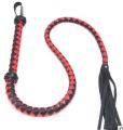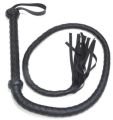 De zweep heeft een stoer uiterlijk en is gemaakt van gevlochten vegan leer, met aan het uiteinde floggers. Wat deze zweep bijzonder maakt, is dat de lengte maar liefst 172 cm lang is. Zo kun je op een afstand rake klappen uitdelen.