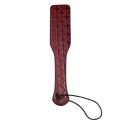 De paddel is voorzien van een mooie diamond design en is vrij stevig voor het uitdelen van klappen. Gemaakt van leer en een ideaal formaat om mee te nemen naar een feest of wie weet wel op reis.
