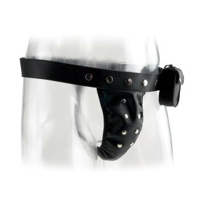 Deze Fetish Leather Low-Rider harnas is voorzien van een krachtige vibrerende bullet die discreet verborgenzit in de voering met een zakje. De sterke stimulatie van de bullit is speciaal voor de clitoris van de drager zodat deze ook intenst kan genieten bij elke gepassioneerde stoot! Doordat het gemaakt is van zwaar en echt rundleer en een zachte polyester voering, voorkomt het dat het gaat schuren.