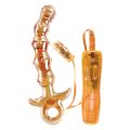 Wanneer je deze glazen dildo wilt laten trillen dan plaats je de vibrerende bullet in deze lus. De bullet is te bedienen met de afstandsbediening. Door op de onderste knop te drukken zet je de vibrerende bullet aan en ook weer uit en met de bovenste knop verstel je zijn 1 verschillende vibratie patronen. Eenmaal aan licht de vibrerende bullet op en knippert in het ritme van het gekozen vibratie patroon.