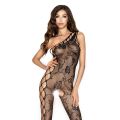 Een spannende catsuit met een echt wauw effect. De catsuit is gemaakt van zachte en fijne netstof afgewerkt met een elegant bloemen motief. Ook heeft deze catsuit een open kruis en een jarretel look waardoor hij extra sexy oogt.