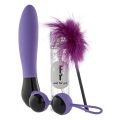 Deze mooie giftset bestaat uit drie spannende speeltjes, waarmee je veel plezier zult beleven. Alle drie de speeltjes zijn gemaakt van ABS kunststof afgewerkt met een zachte siliconen coating. De set bestaat uit een G-spot vibrator, Ben Wa Balls en een mini vibrator. De twee vibrators in deze set zijn voor de sier afgewerkt met fonkelende strass steentjes.